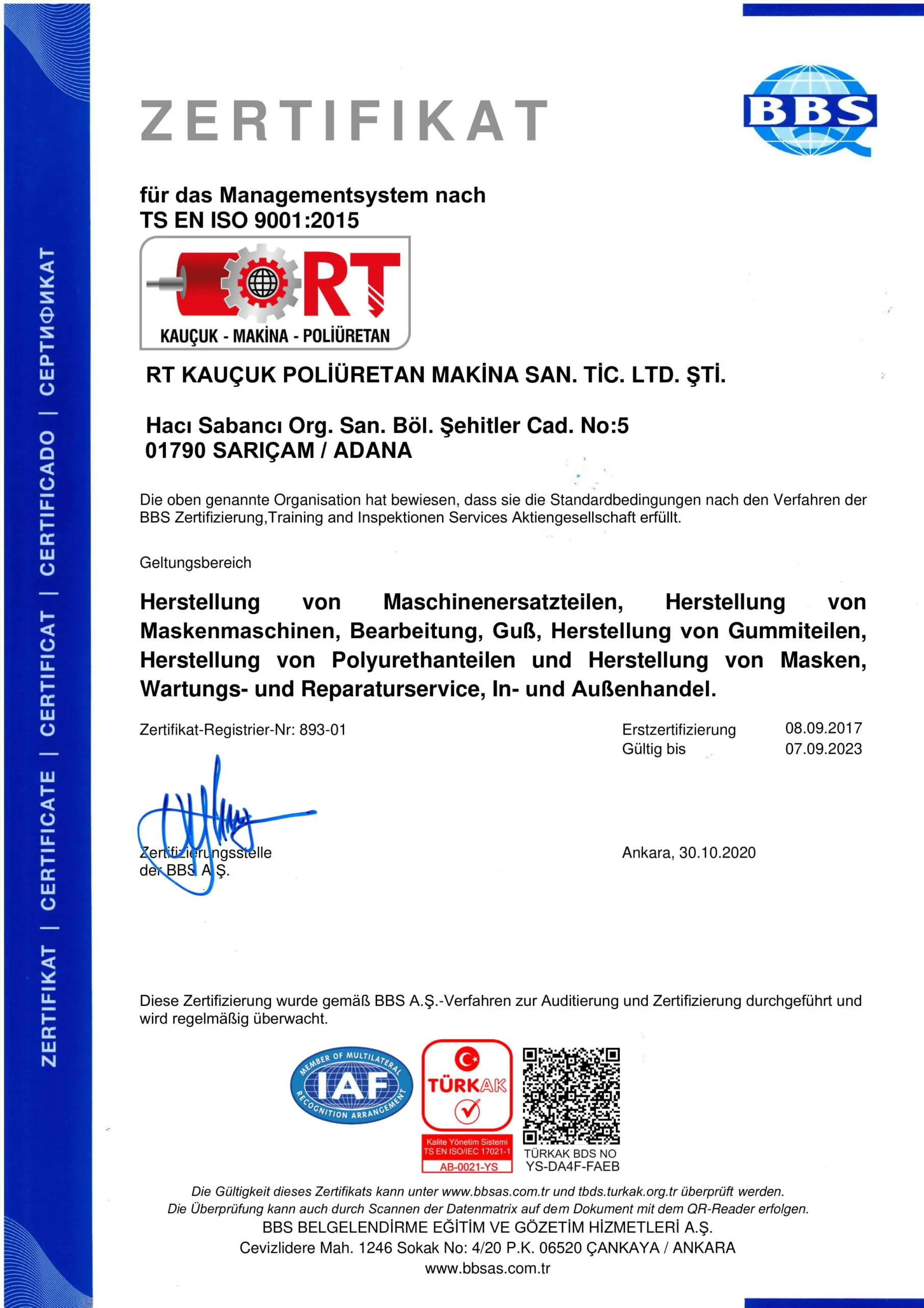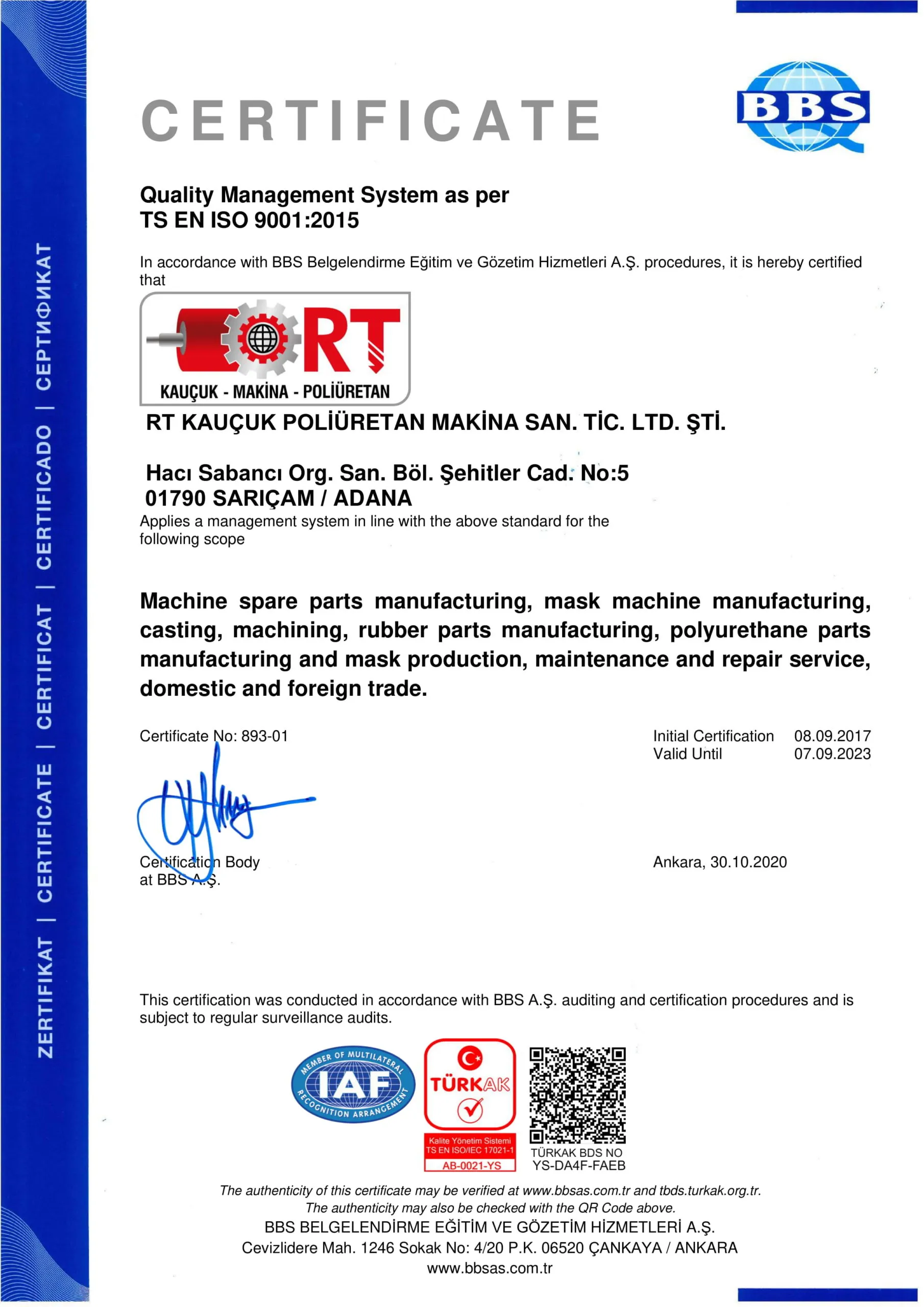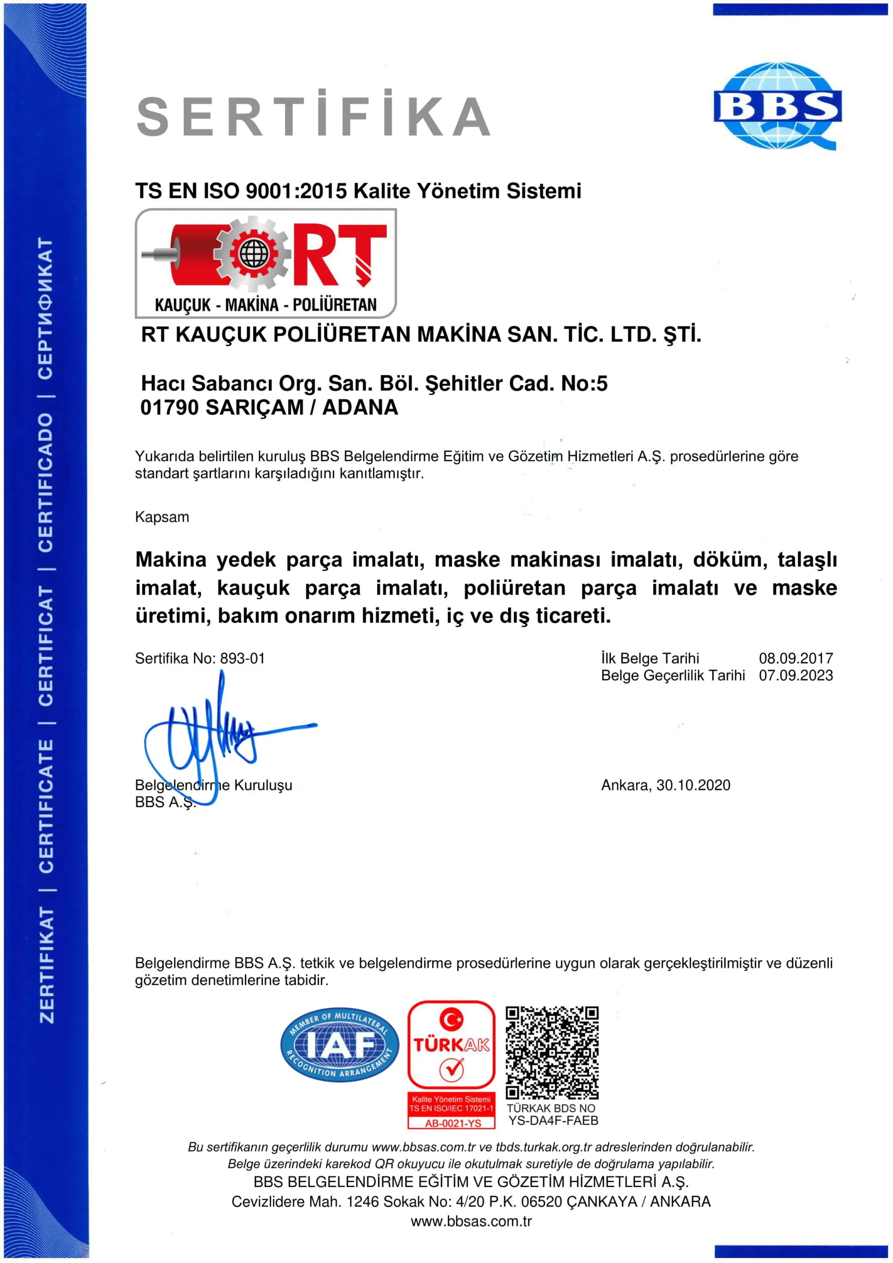 | TSE (Turkish Standards Institution) | Tüm global normlar ve kalite standartlarına uymak ve uygulamak, | CMM (Bilgisayar Kontrollü Ölçüm) ölçüm kontrol raporu |
